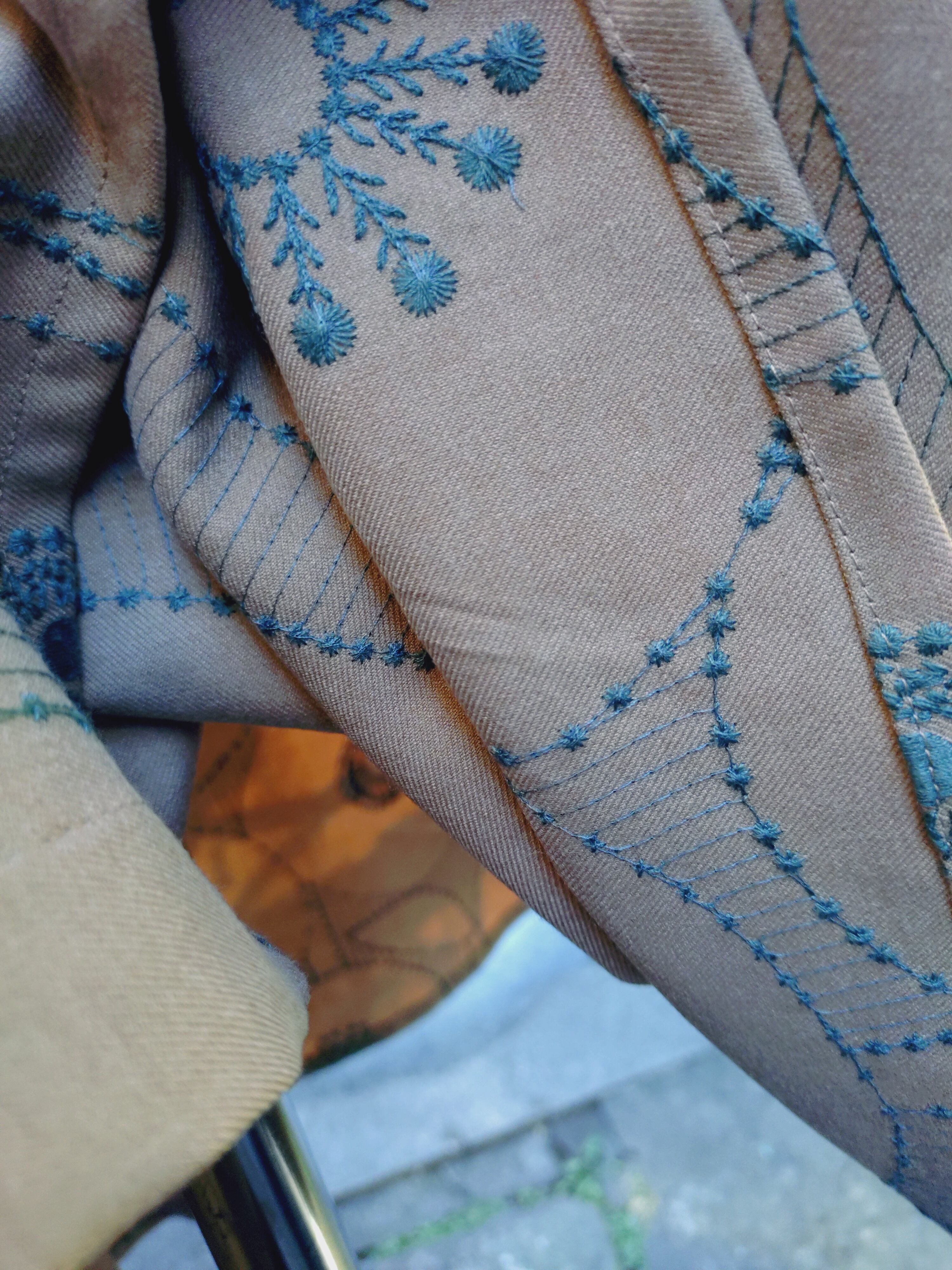 品質表示:ポリエステル69%、レーヨン28%、ポリウレタン3%