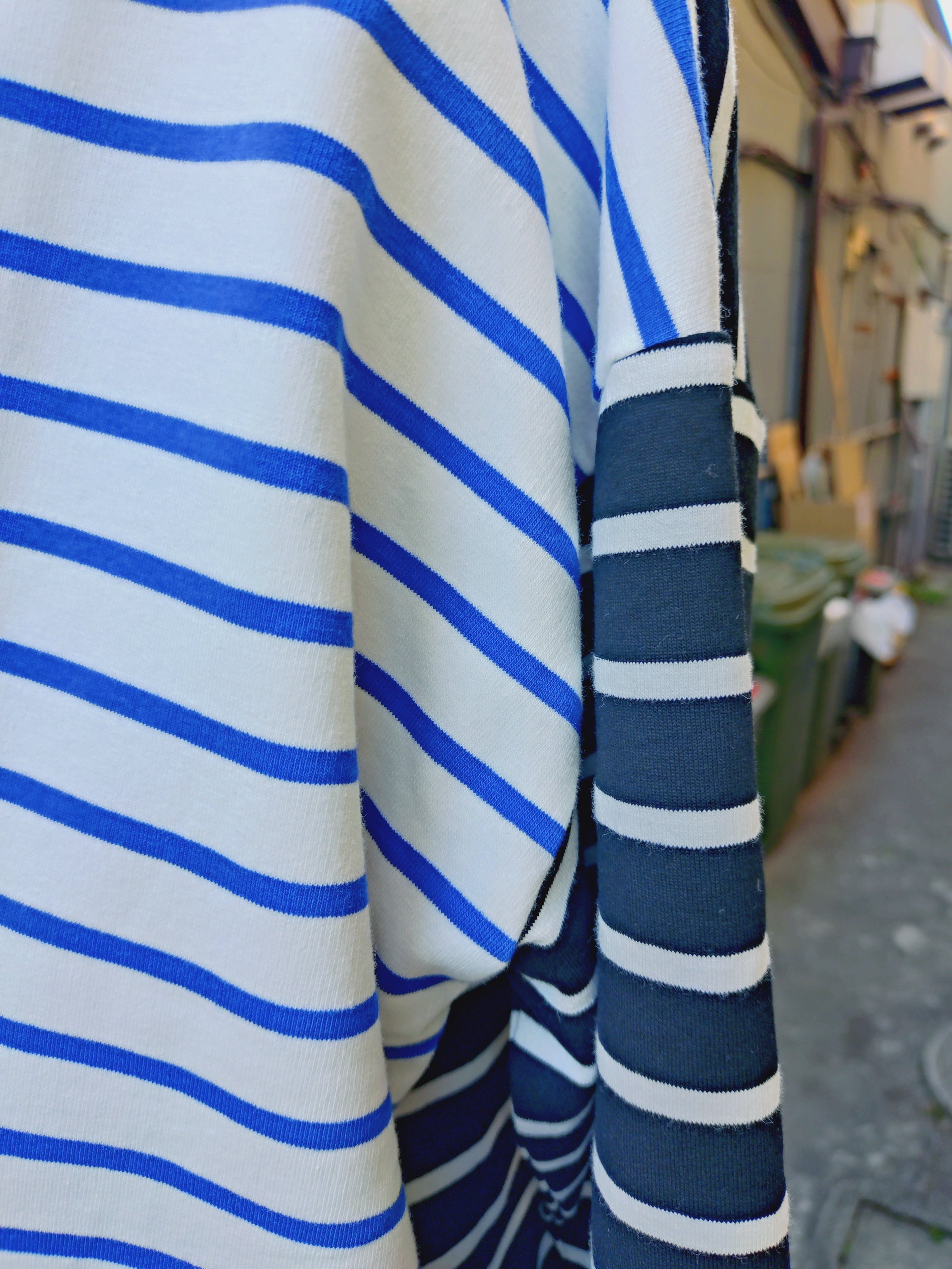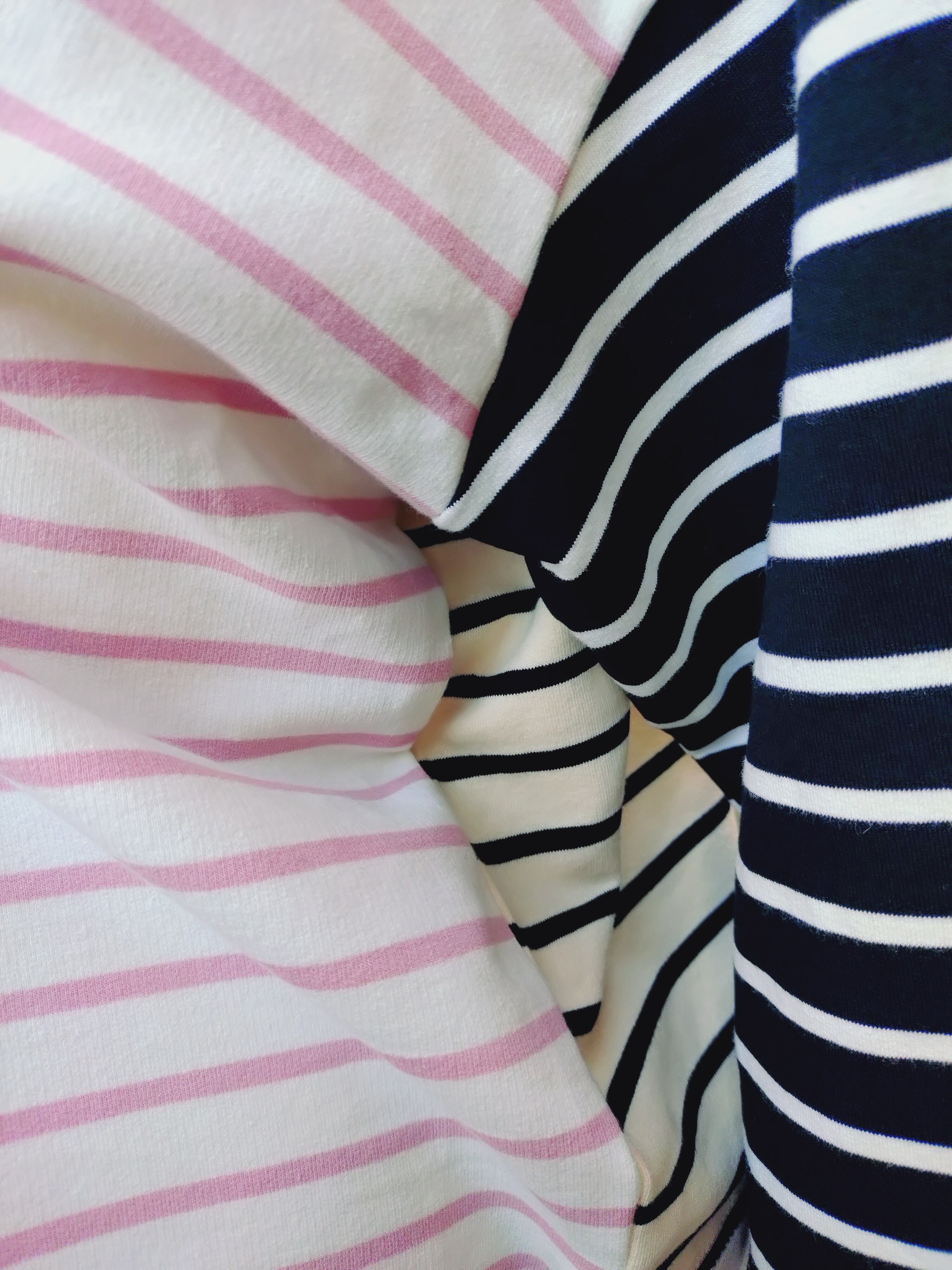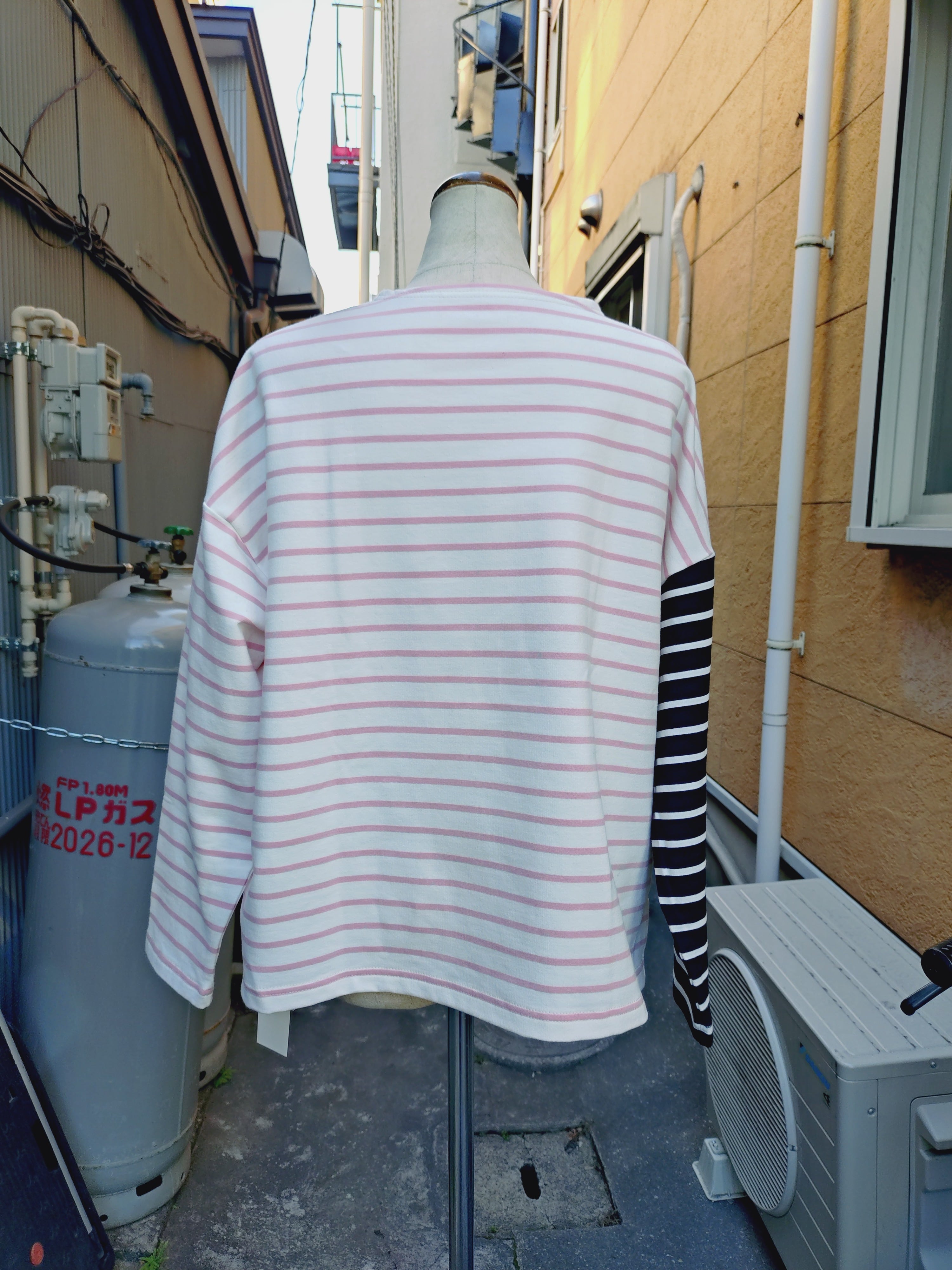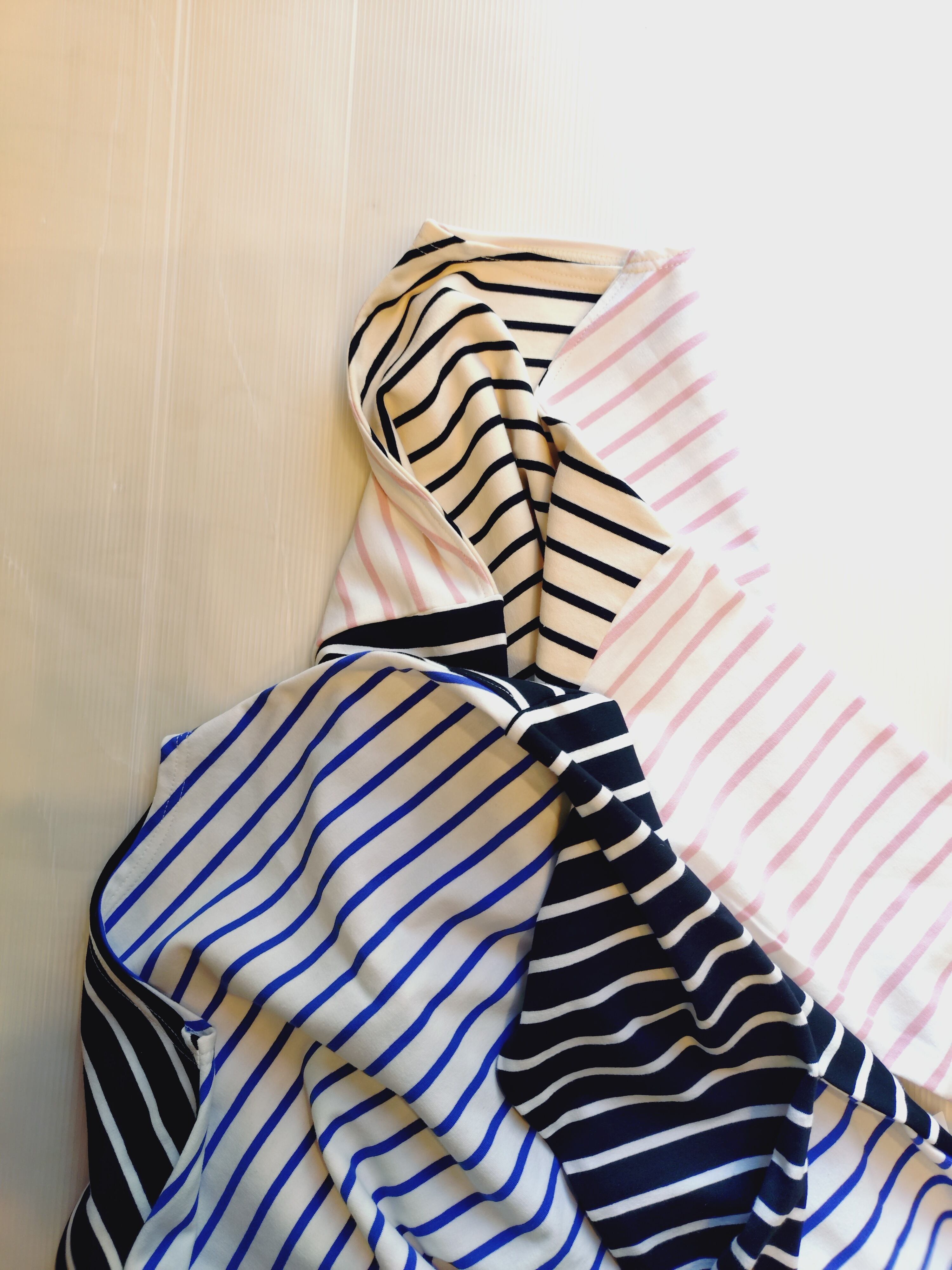 3色のボーダーを色々組み合わせた、プルオーバーです。