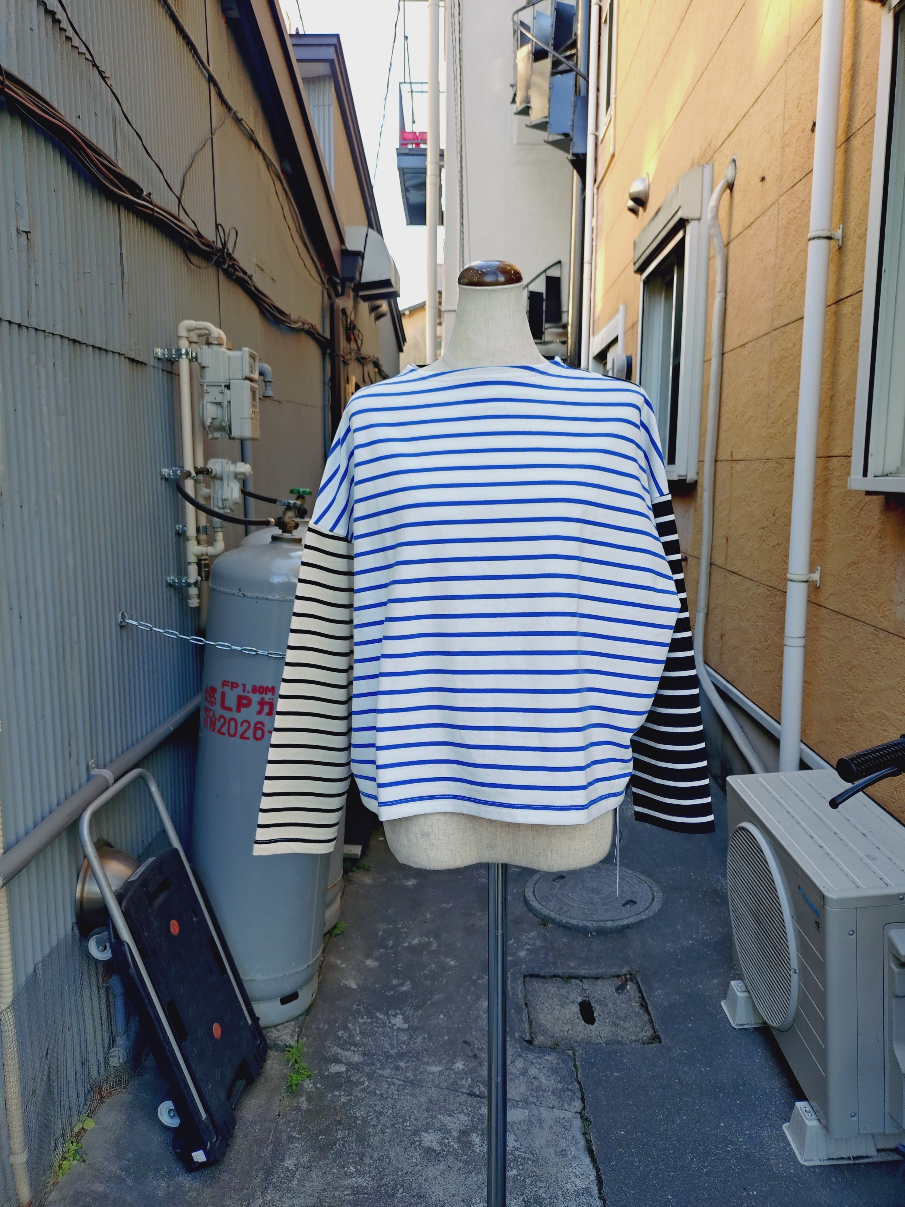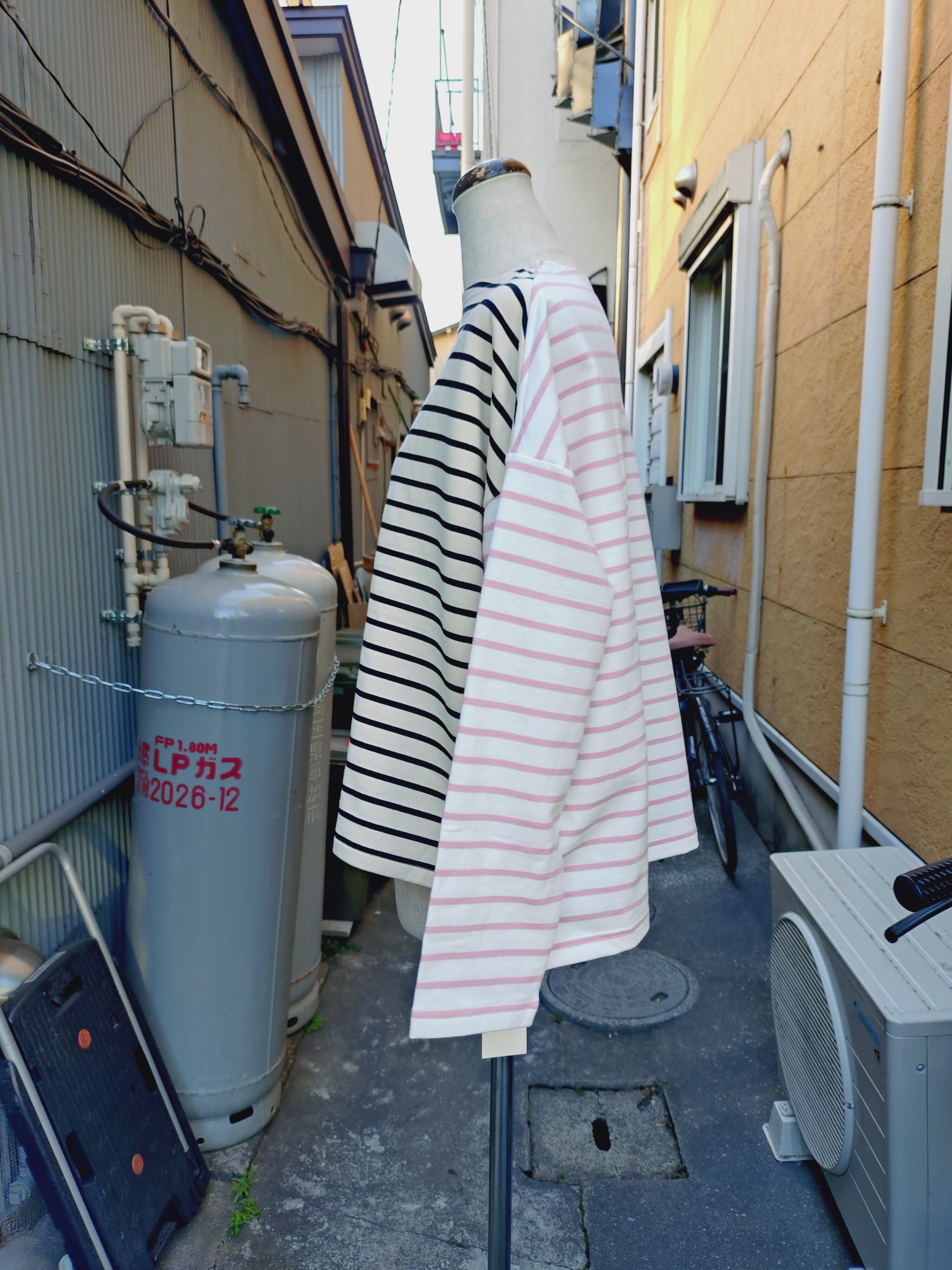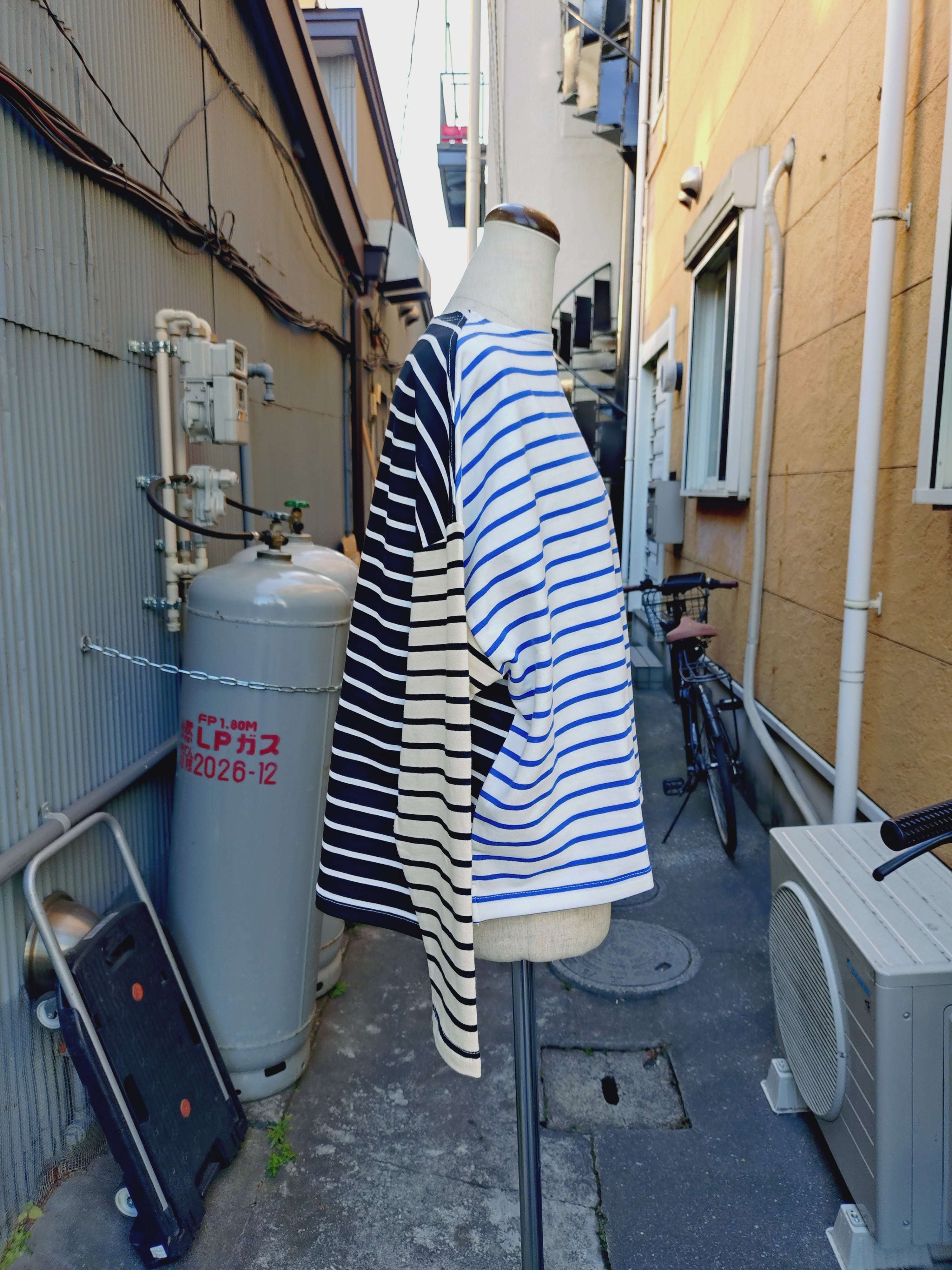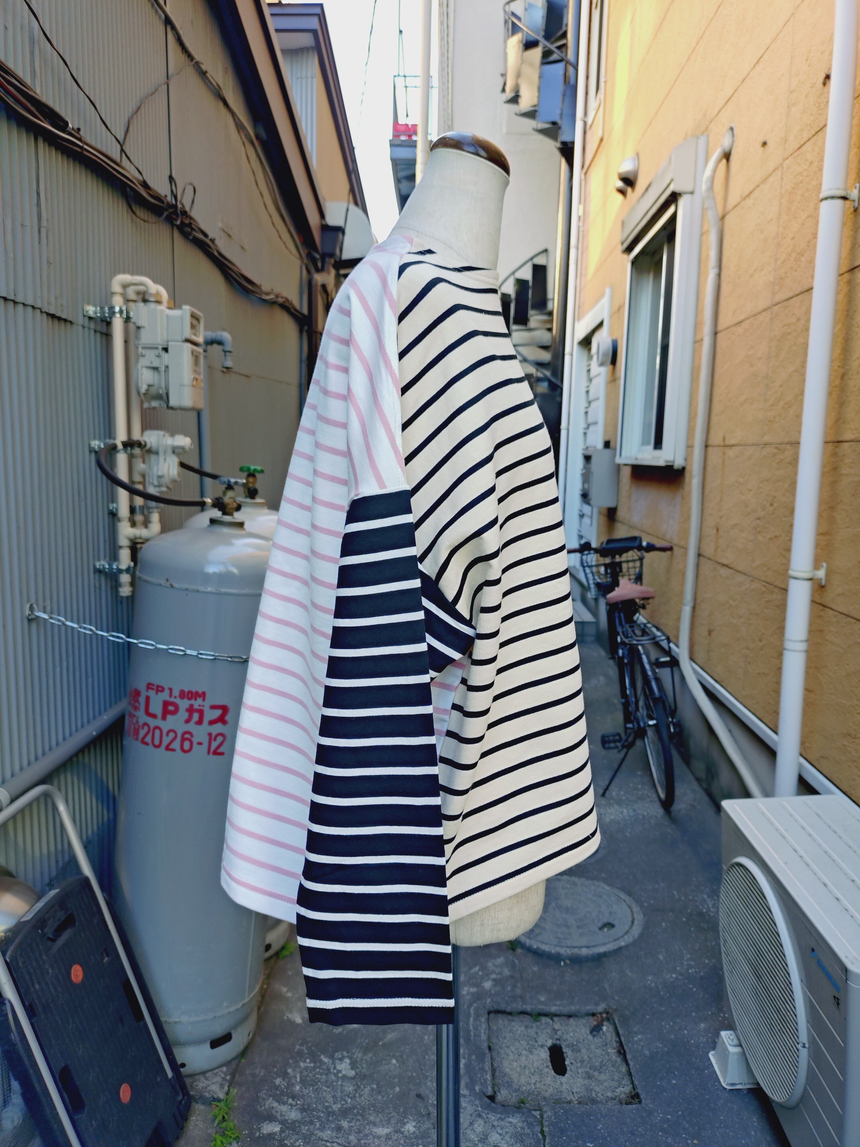 3色のボーダーを色々組み合わせた、プルオーバーです。